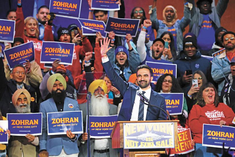 紐約市長候選人馬姆達尼在一場造勢大會上。美聯社