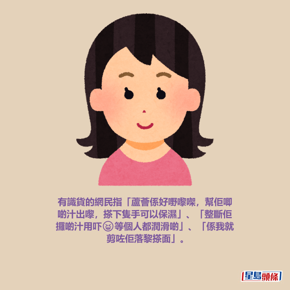 有識貨的網民指「蘆薈係好嘢嚟㗎,幫佢唧啲汁出嚟,搽下隻手可以保濕」、「整斷佢攞啲汁用吓😆等個人都潤滑啲」、「係我就剪咗佢落黎搽面」。