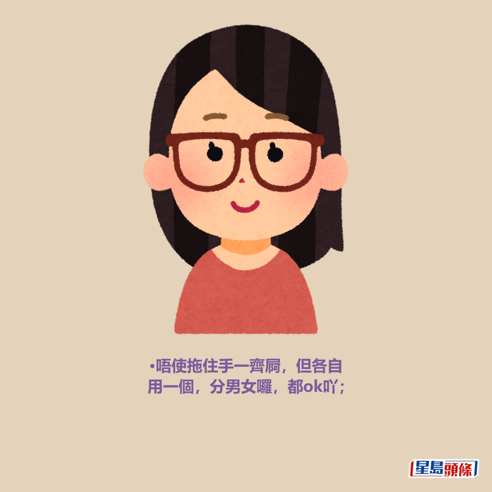 •唔使拖住手一齊屙,但各自用一個,分男女囉,都ok吖;