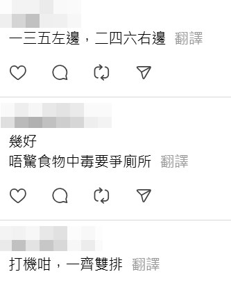 不少網民補充,「你唔明爭廁所有幾恐怖」、「趕住返工時你就明白呢到嘅用途係乜」;另有人笑言「驚一齊食錯嘢肚屙唔使爭廁所」、「幾好,唔驚食物中毒要爭廁所」、「冇問題,啱budget(預算)就得,兩公婆冇所謂,肚屙起來真係要兩個馬桶」。
