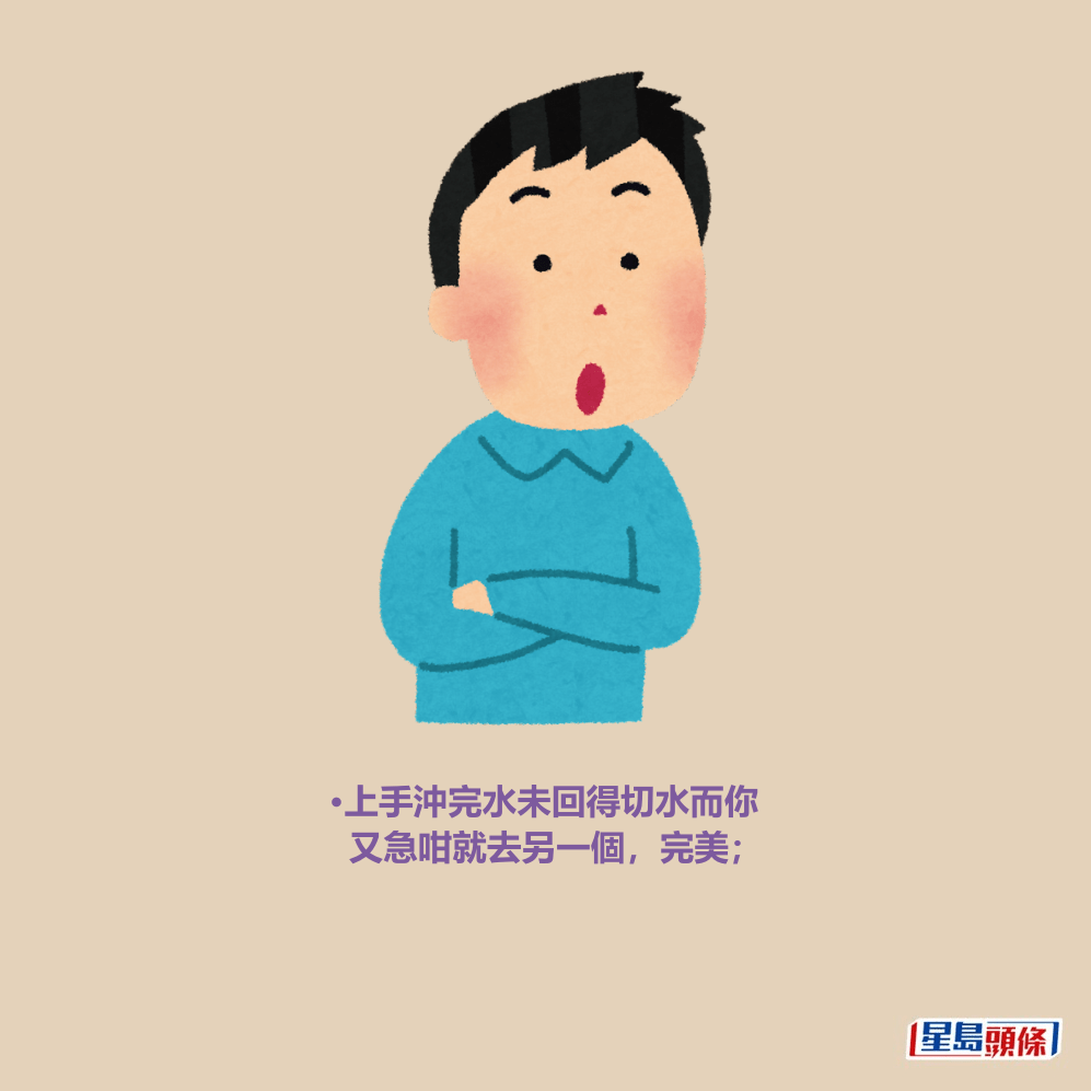 •上手沖完水未回得切水而你又急咁就去另一個,完美;