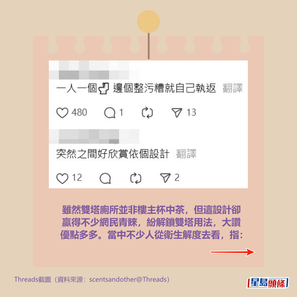 雖然雙塔廁所並非樓主杯中茶,但這設計卻贏得不少網民青睞,紛解鎖雙塔用法,大讚優點多多。當中不少人從衛生解度去看,指:
