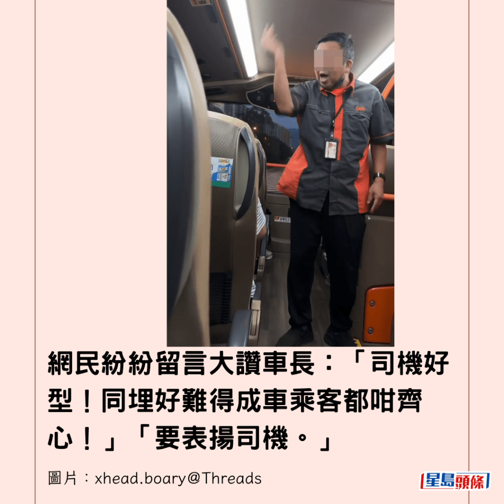 網民紛紛留言大讚車長:「司機好型!同埋好難得成車乘客都咁齊心!」「要表揚司機。」