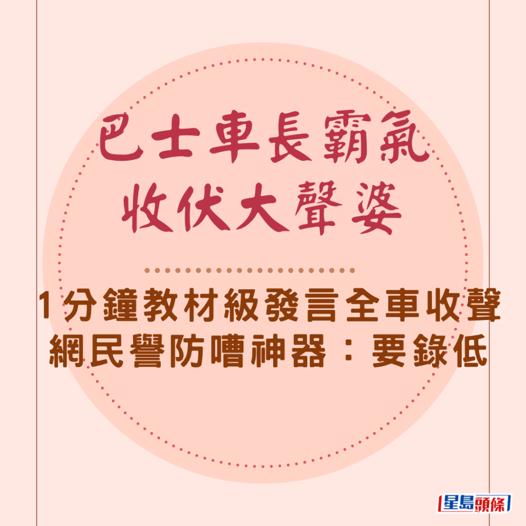 巴士車長霸氣收伏大聲婆 1分鐘教材級發言全車收聲 網民譽防嘈神器:要錄低↓↓↓↓