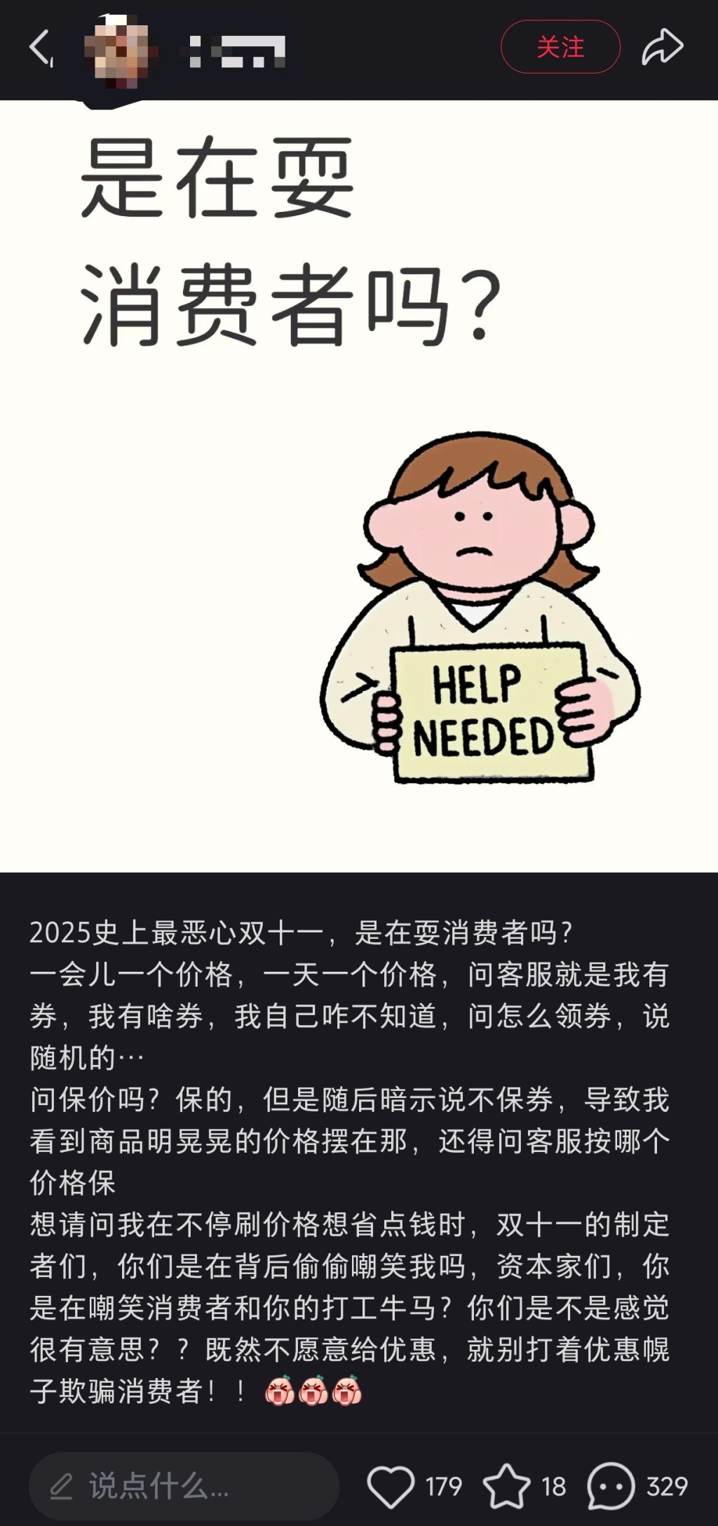 《法治日報》指,在某第三方投訴平台上的「雙十一價保」相關投訴已達上萬條。多名消費者投訴稱,雙十一期間購買的商品並未如商家承諾為「最低價」,提出價保申請後,商家以「平台優惠券、贈品不參與價保」或「早買早享受」等理由拒絕。亦有賣家通過下架商品或更改鏈接來規避價保責任。