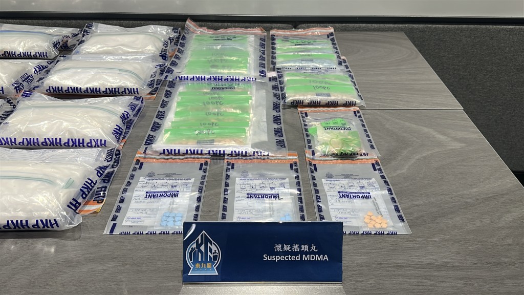 警方檢獲市值逾1600元的搖頭丸及氯胺酮。