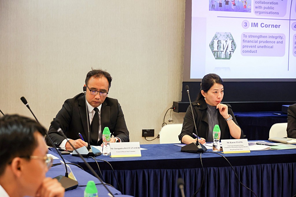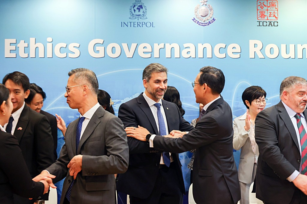 圓桌會議期間,警務處副處長(管理)陳俊燊帶領警隊代表與國際刑事警察組織內部監督辦公室總監Eugênio RICAS所率領的代表團,廉政公署副廉政專員兼執行處首長丘樹春所帶領的代表團,以及菲律賓(George SORIANO)、澳洲(Matthew STOCKS)、印尼(Yuliana Ratih DAMAYANTI、Ristola NAINGGOLAN、Henry Yoseph KINDANGEN)、日本(Kohei NAMIMA)、蒙古(Luvsanperenlei ERDENEBAT)、荷蘭(Adnane MAKRANI)、泰國(Jarupatra RATTANASERI)及美國(Gregg GEERDES)的海外駐地聯絡主任及領事進行會談。