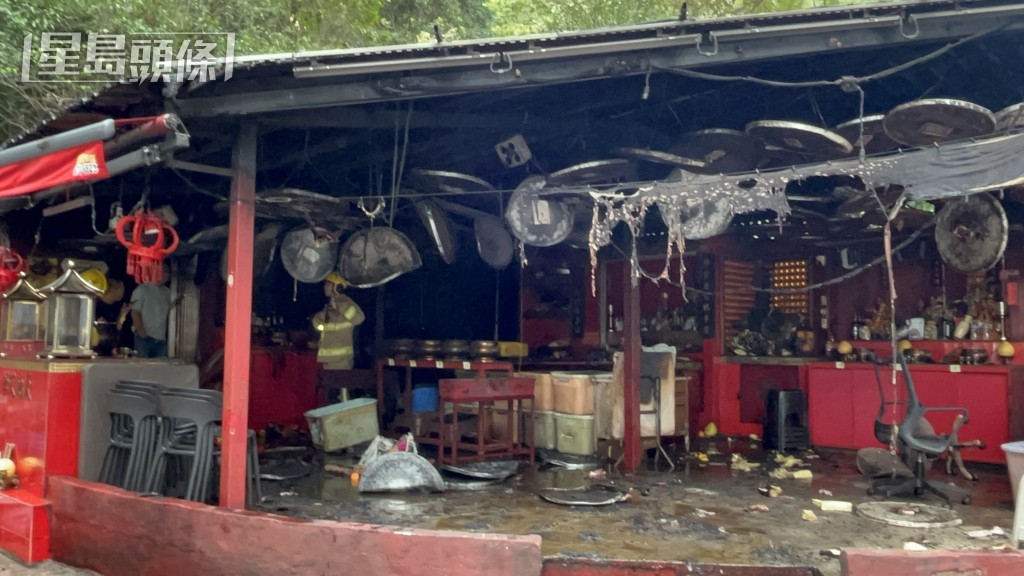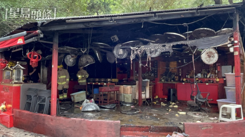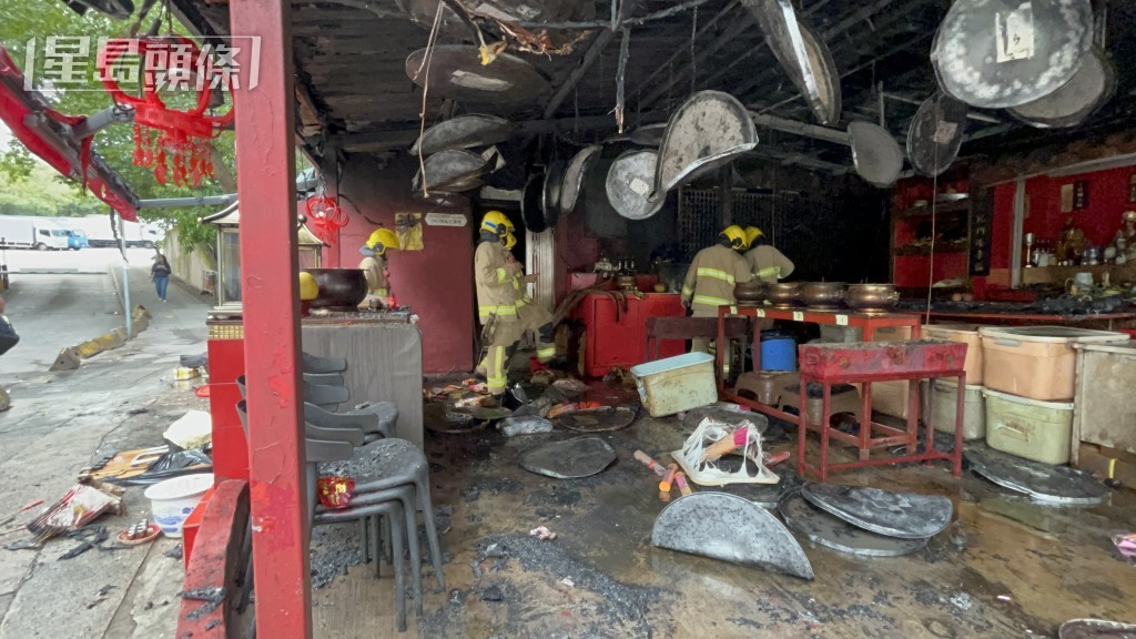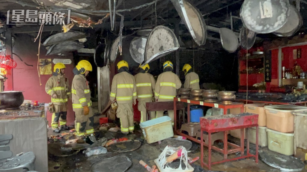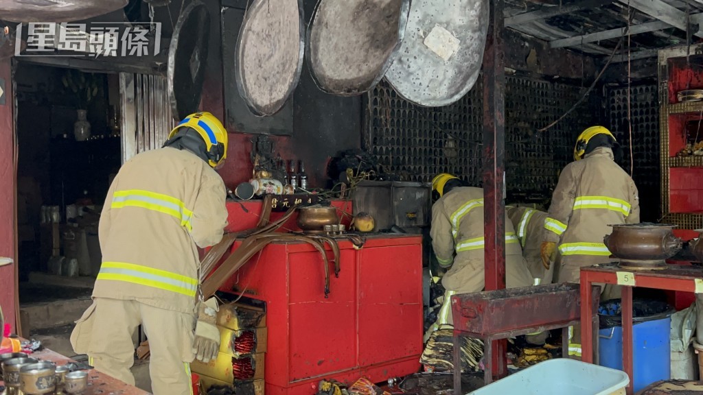 消防相信是掛於天花的塔香火種跌下,燒着衣紙釀成火災。