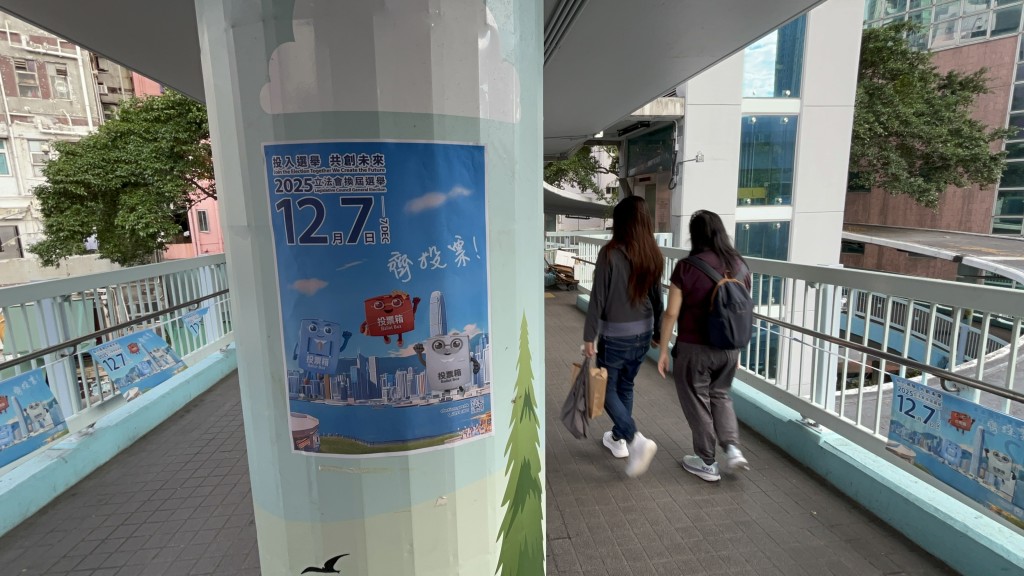 案情指旺角塘尾道行人天橋上的立法會選舉宣傳海報遭破壞 。楊偉亨攝