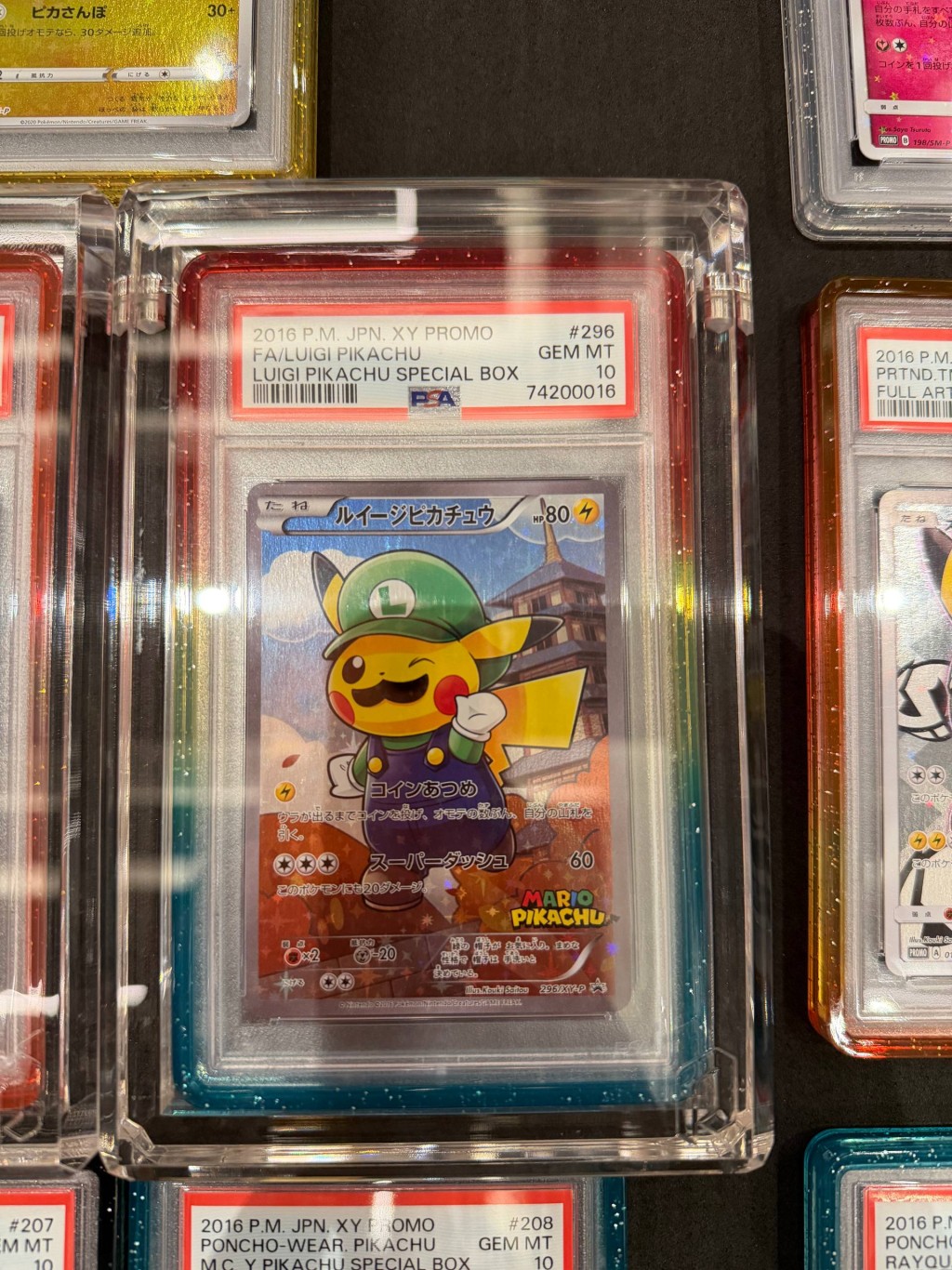 另一收藏家Michael對此表示認同,相比起大起大落的球星卡,他更鍾情於Pokémon卡,專攻由專業機構評分滿分的「比卡超」及其Cosplay變裝系列。他指出,Pokemon中的「御三家」及比卡超較為穩定,價格相對「硬淨」。目前他手頭上最貴的一套Mario Pikachu(瑪利歐聯乘比卡超系列),目前市值約29.8萬元,較入手價升一成。