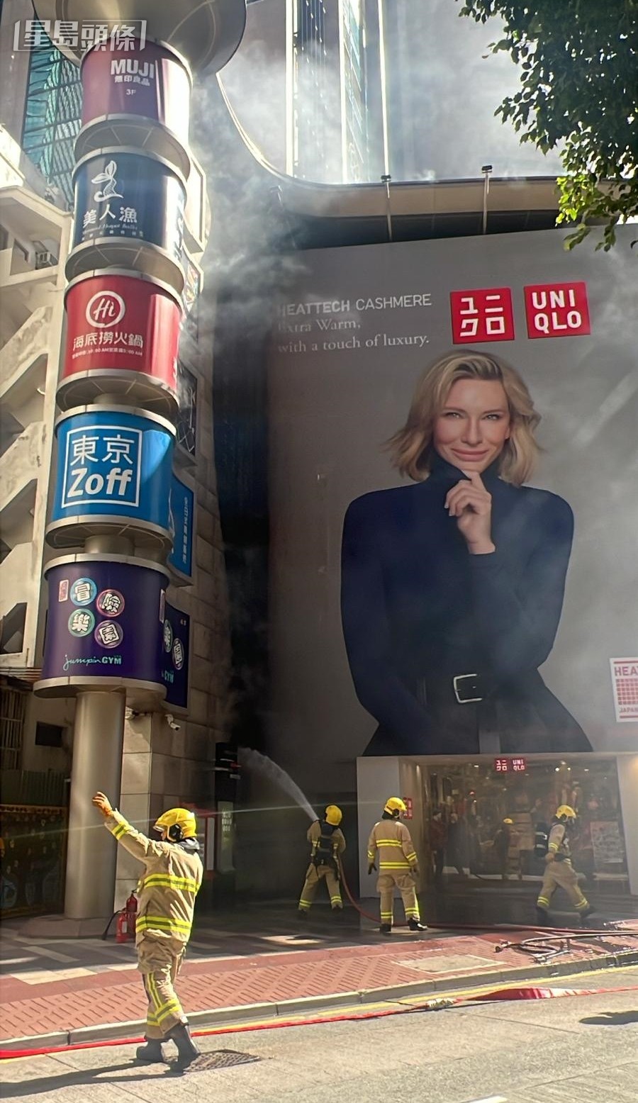 ⾸⾴ 即時港聞 有片︱銅鑼灣利舞臺火燒巨型招牌 烈焰沖天消防撲救 2025-11-24 22:41:00 銅鑼灣有巨型招牌起火。今日(25日)中午12時53分,利舞臺廣場外一幅巨型廣告招牌突然起火,烈焰升至數層樓高,冒出大量濃煙席捲半空。現場是勿地臣街1號,消防接報趕到動用一條喉及一隊煙帽隊灌救,初步未有傷亡報告,其後至下午1時43分將火救熄。警方正調查起火原因。 銅鑼灣利舞臺廣場外巨型招牌起火。fb馬路的事 (即時交通資訊台)影片截圖 消防員到場撲救。 消防射水救火。 消防員射水救火。蔡楚輝攝 利舞臺廣場外巨型廣告招牌起火。 大批途人圍觀。 現場是利舞臺廣場。