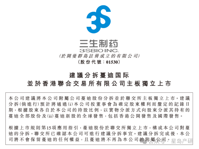 而後,便是2025年11月,三生製藥為三生蔓迪引入新的戰略投資者,並更名為蔓迪國際,開始啟動分拆上市。