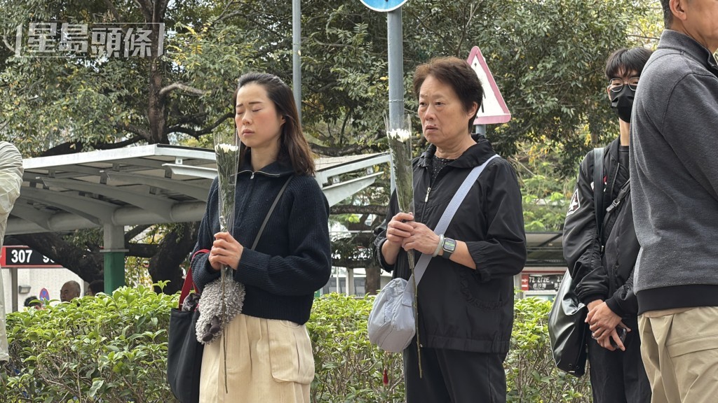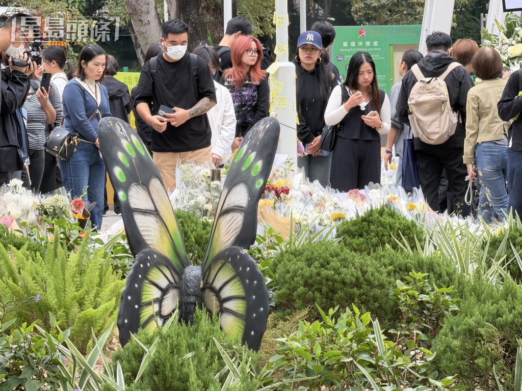 大埔宏福苑五級火造成多人死傷,今日(30日)早上,繼續有大批市民到鄰近火災現場的廣福休憩處,獻花悼念死難者。其間有人傷心痛哭,有人向遠處的災場躹躬致意,亦有人寫下心意字句,「願死者安息,傷者快快康復」。另外,有外傭到公園為死難者祈禱。