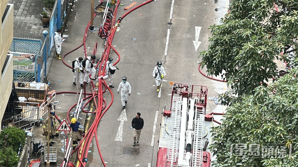 另外,警方及消防繼續在宏福苑大火現場調查,災難遇害者辨認組「DVIU」人員到場登樓搜索,而消防亦在場戒備射水,今早亦繼續有市民到鄰近火災現場的廣福休憩處,獻花悼念死難者。有市民跪地上香拜祭,亦有市民寫上心意字貼,獻上祝福。