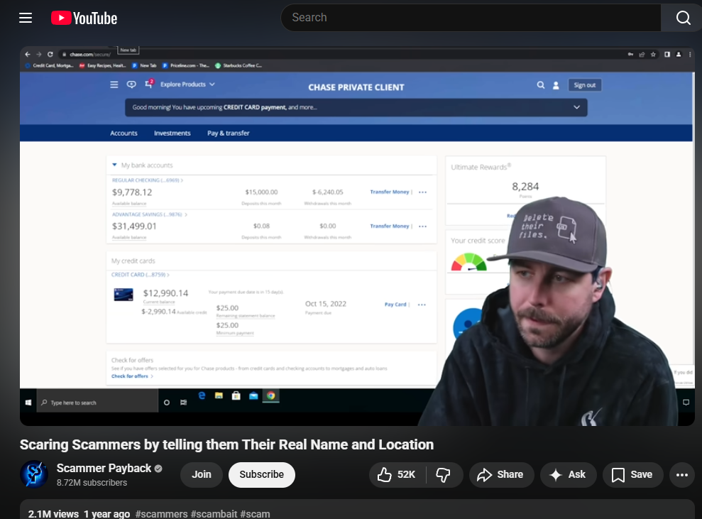 要真正看清詐騙如何運作,可參考一些完整呈現騙案流程的公開資料。例如 YouTube 頻道 Scammer Payback,透過與詐騙者長時間周旋,清楚展示由最初接觸、建立信任、製造錯誤、施加情緒壓力,到要求轉移資金的每個環節。這類實例有助對照自身經歷,累積實際判斷能力。