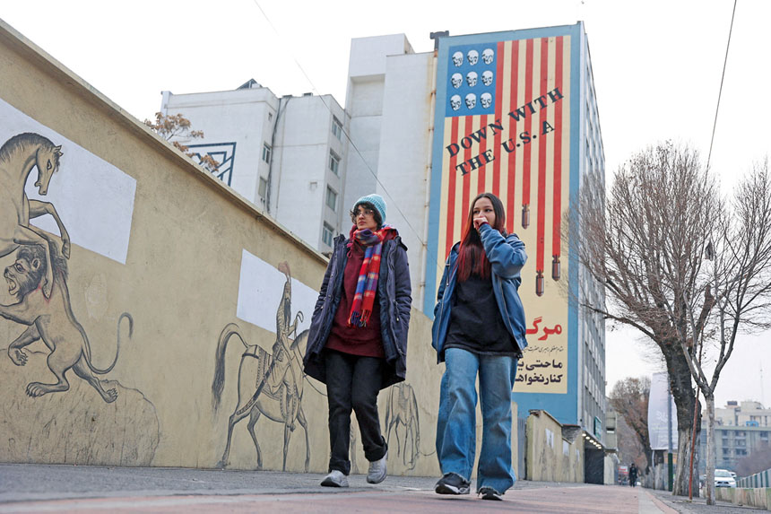 對於特朗普威脅將出手介入伊朗騷亂(左小圖),伊朗外交部譴責美國干涉內政,圖為伊朗首都德黑蘭出現反美標語。路透社