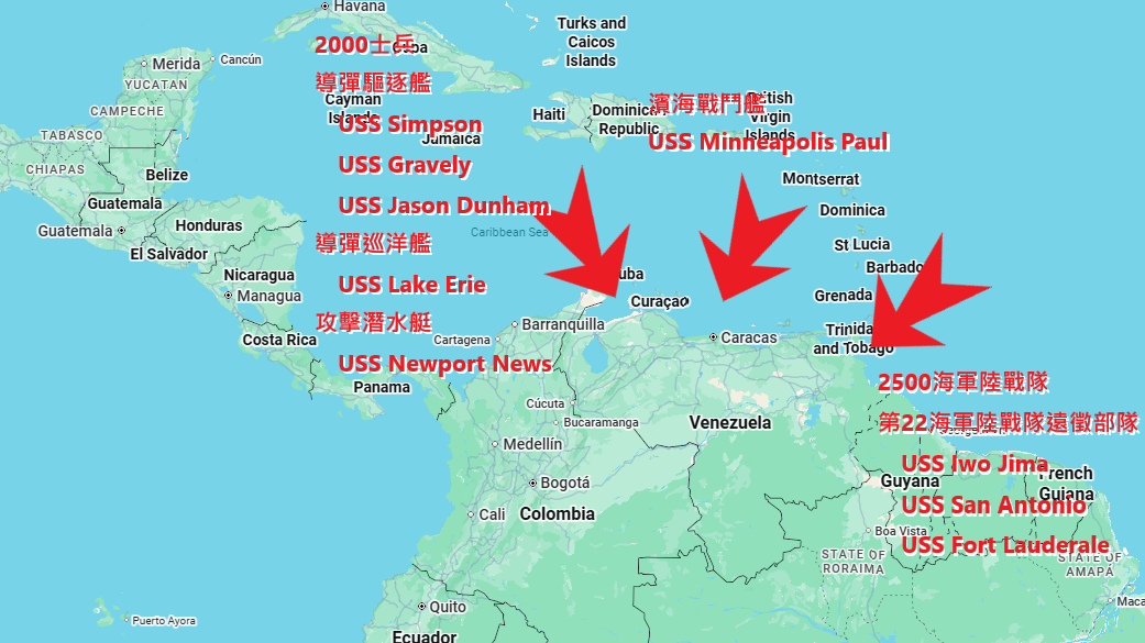 美國上周六(3日)對委內瑞拉發動大規模軍事打擊,逮捕總統馬杜羅。事件震驚全球,但其實早有先兆。2025年的下半年,美國與委內瑞拉局勢持續緊張,美國在加勒比海集結本世紀以來最大規模的軍力部署,規模為1989年入侵巴拿馬後、西半球最龐大一次。多艘阿利伯克級導彈驅逐艦、提康德羅加級巡洋艦、核動力攻擊潛艇,以及第22海軍陸戰遠征隊,集中在委內瑞拉領海外圍,合共可動用大量戰斧巡航導彈、艦載戰機與兩棲登陸能力,並有約2500名海軍陸戰隊員與約2000名海軍人員。另有濱海作戰艦與至少10架F-35戰機進駐波多黎各空軍基地。