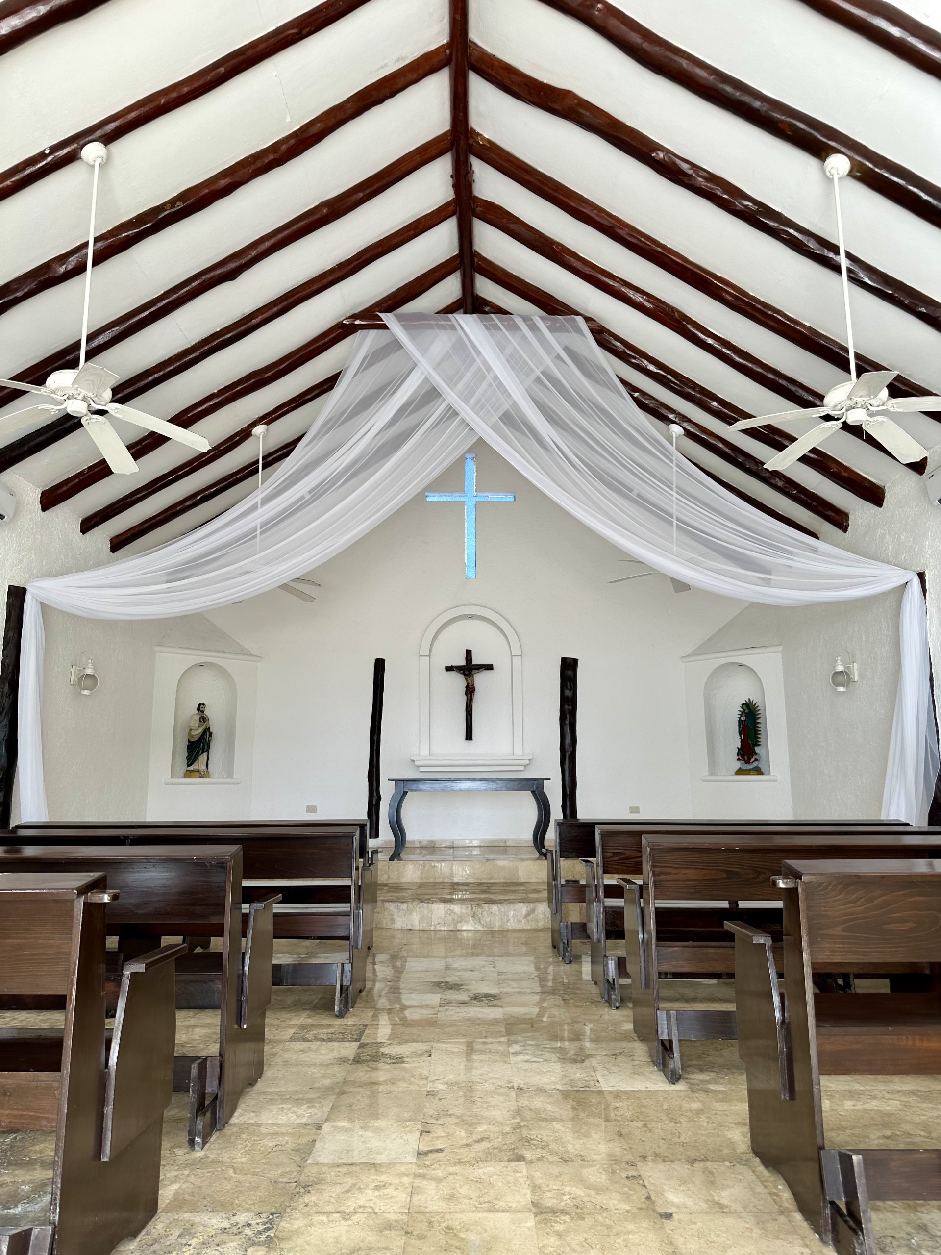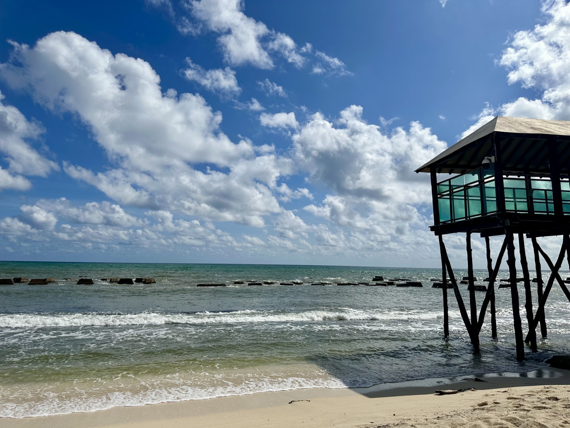 我最喜歡的是一條建設在海邊,連接著三所酒店,共約兩哩的步行徑。每天在不同時段,我都喜歡從一面走到一面,再回頭走回入住的酒店。期間,清風撲面,走過合心意的咖啡廳又停下來喝杯咖啡,再在沙灘的韆鞦上一面吃冰淇淋一面搖蕩欣賞著眼前海天一色的美景。酒店範圍内我走過兩所教堂,設計各有不同。