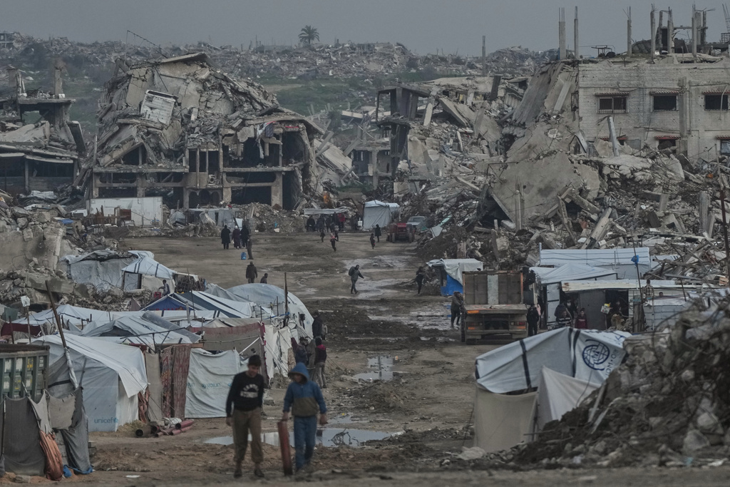 封面來源:2026年1月14日,星期三,在加沙城宰圖恩區,巴勒斯坦人走過被以色列空襲和地面行動摧毀的建築物。 美聯社