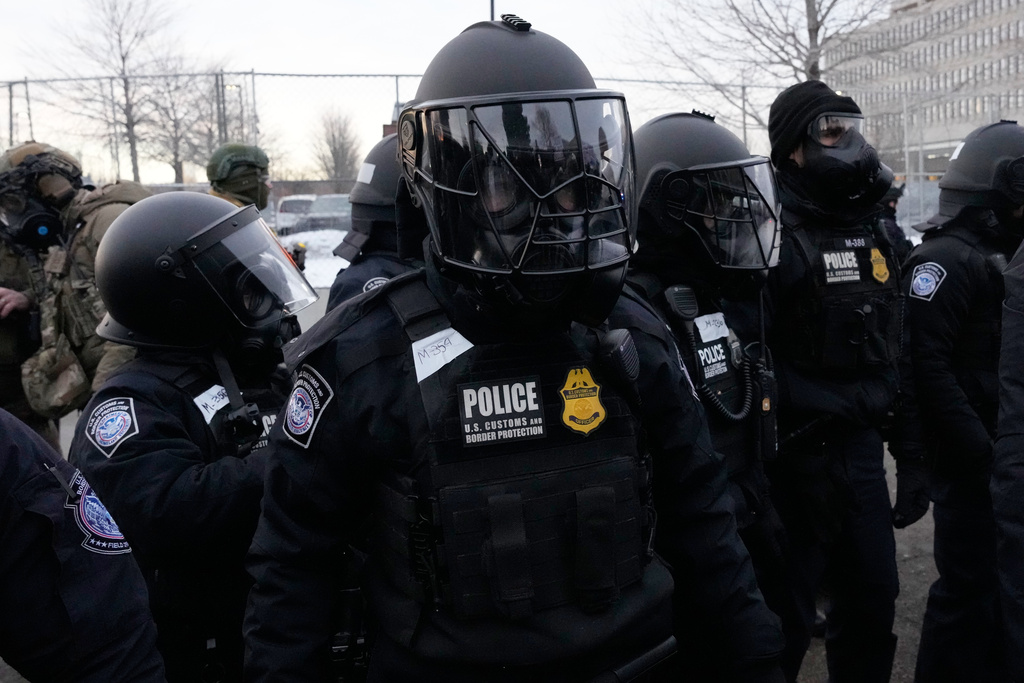 封面來源:2026年1月17日星期六,在明尼阿波利斯市亨利·惠普爾主教聯邦大樓外,一名抗議者手持倒置的美國國旗,執法人員在一旁警戒。 美聯社