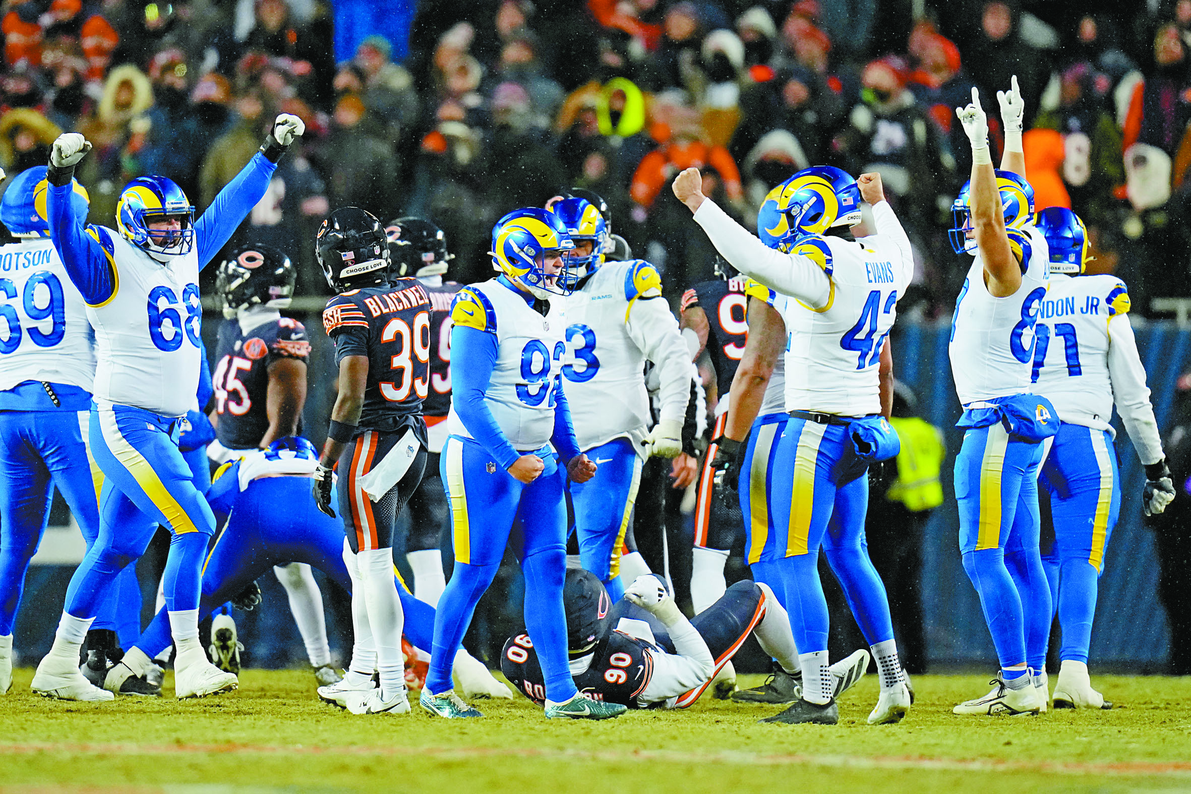 季後賽分區輪兩場焦點對決18日在風雪中軍上演鏖戰:公羊在芝加哥寒夜中與熊隊鏖戰至加時賽,憑一記精準的再見射門生擒對手;新英格蘭愛國者則在濕冷戰場壓制德州人,時隔七年重返美聯冠軍賽。