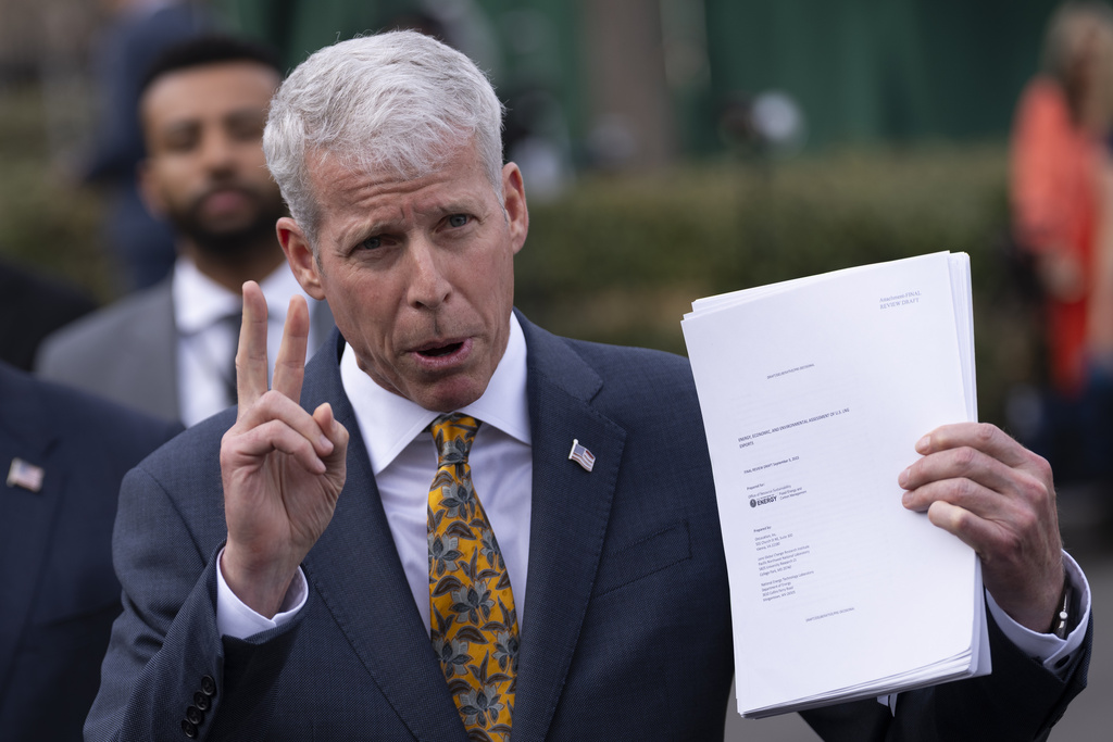 封面來源:2025年3月19日星期三,美國能源部長克里斯·賴特在華盛頓白宮向記者發表講話時,手持一份關於美國液化天然氣(LNG)出口的報告。 美聯社