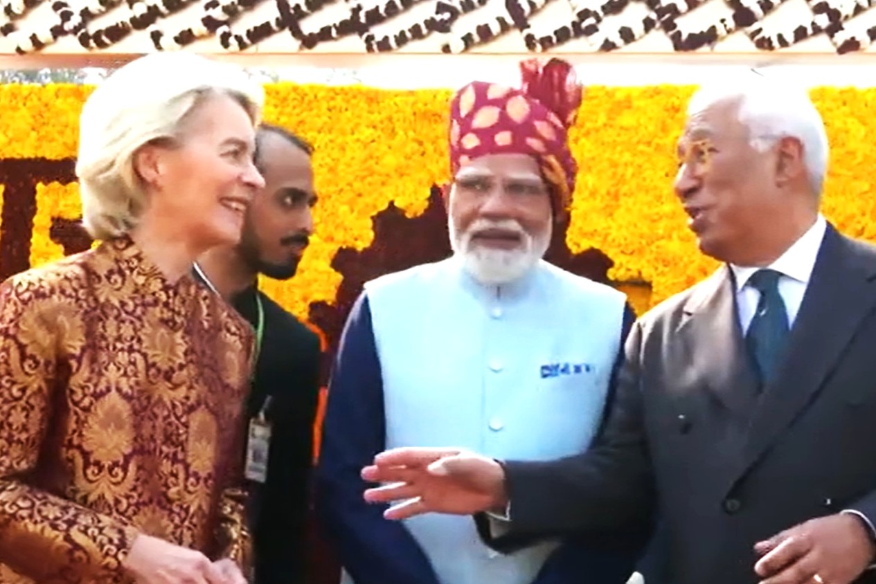 今年參與閱兵的除了印度軍隊,歐盟亦專誠派出軍事隊伍參與。閱兵期間,印度總理莫迪不時與馮德萊恩和科斯塔交談,兩人在印度訪問期間預計將會簽訂一系列協議,包括自由貿易協定,意味印度和歐盟的雙邊關係將會進一步加強。