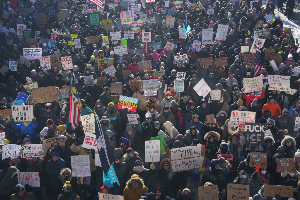 封面來源:含不雅內容 – 2026年1月25日星期日,人們在明尼亞波利斯市中心抗議美國移民及海關執法局(ICE)。 美聯社