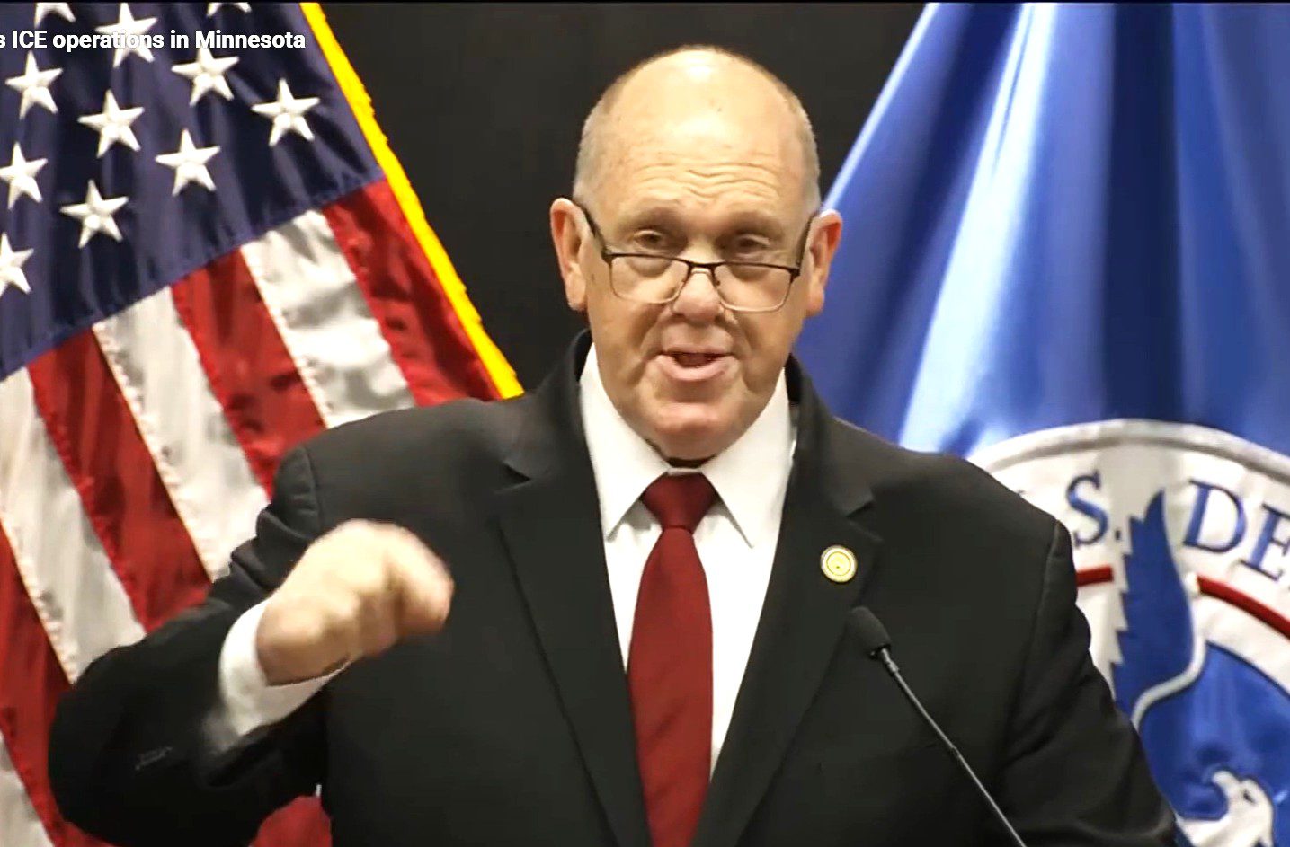 霍曼在記者會宣佈由明尼蘇達州撤走700名移民執法人員。來源:電視直播畫面截圖