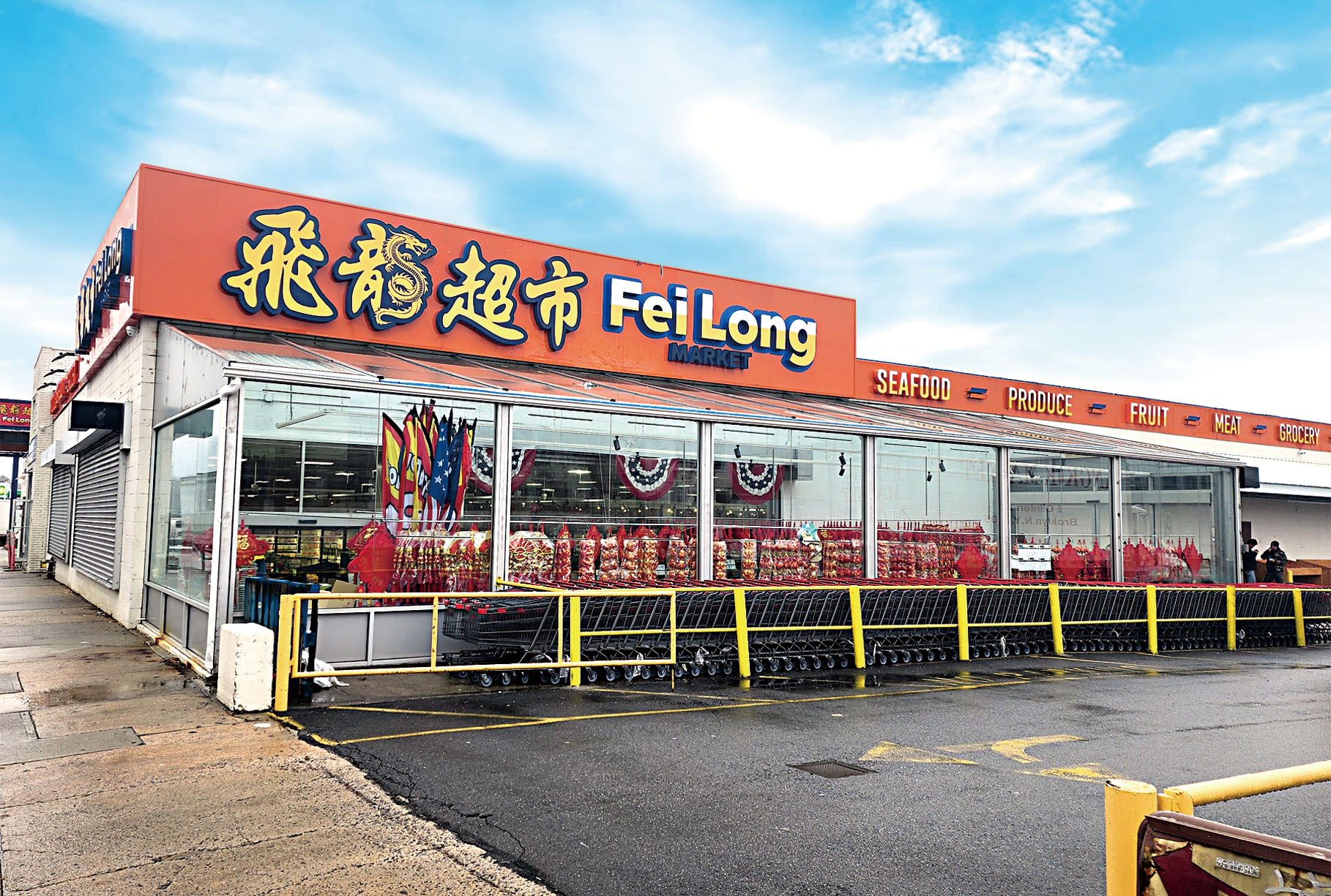 法拉盛飛龍超市店面25,000呎,擁有大型雙停車場,一個從飛龍超市正門入口,另一個從bp加油站後面位於Avery Ave.入口。