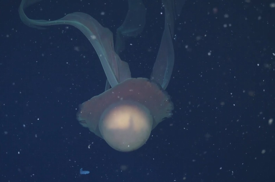 當研究人員正在檢查科羅拉多-勞森(Colorado–Rawson)海底峽谷壁時,意外與這隻巨型生物相遇。幻影水母的學名為「Stygiomedusa gigantea」,是全球體型最大的水母物種之一。牠的傘狀體直徑可達 1 米,而其四條飄逸的口腕完全伸展後,長度約等於一輛校車。
