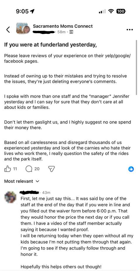 事件過後,Funderland 的 Facebook 專頁迅速成為家長與市民不滿情緒的宣洩出口。園方發布與折扣季票相關的帖文後,短時間內湧入數百則批評留言,內容集中指責活動安排混亂、現場管理失當,以及對受影響家庭缺乏交代。