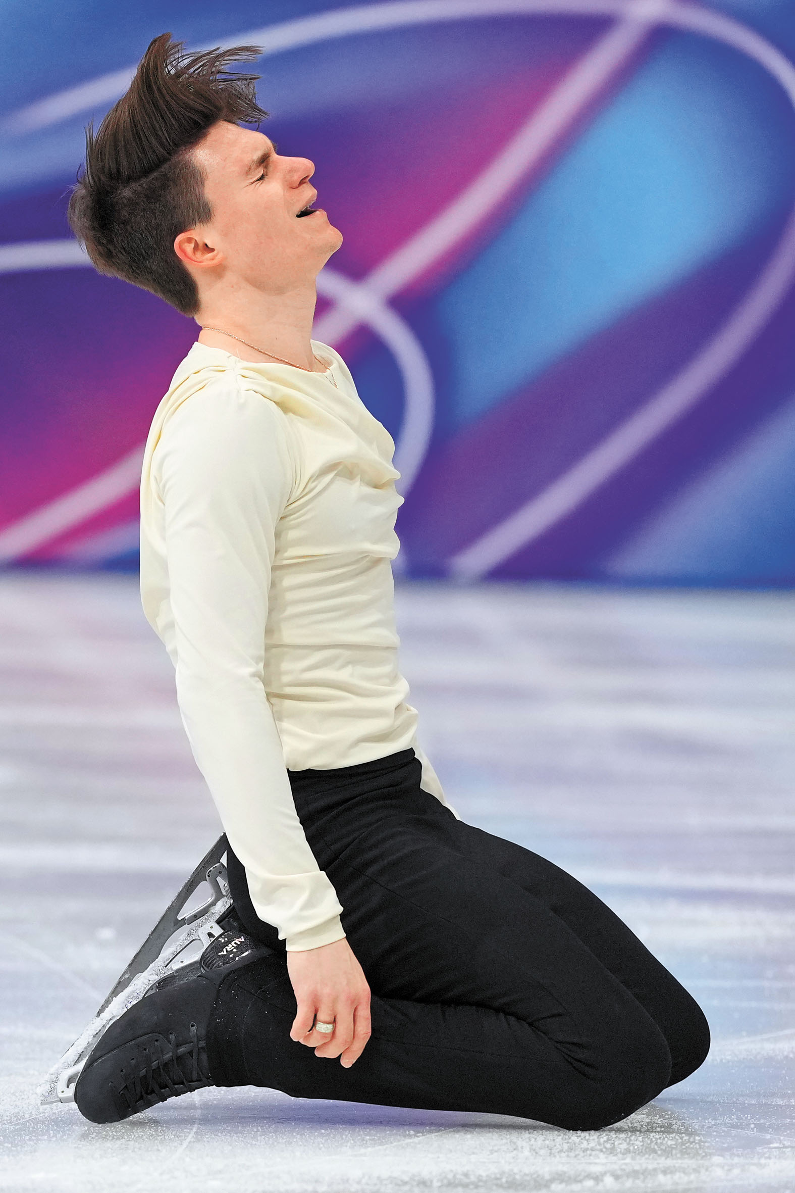 今年1月,復出的瑙莫夫在花滑美錦賽上獲得銅牌,隨後入選冬奧代表團。如今在米蘭滑冰館,他流暢完成了單人滑短節目,比賽結束那一刻仰頭看向天空,幾乎跪倒在冰面上,「我都不知道該哭、該笑,還是該怎樣。」