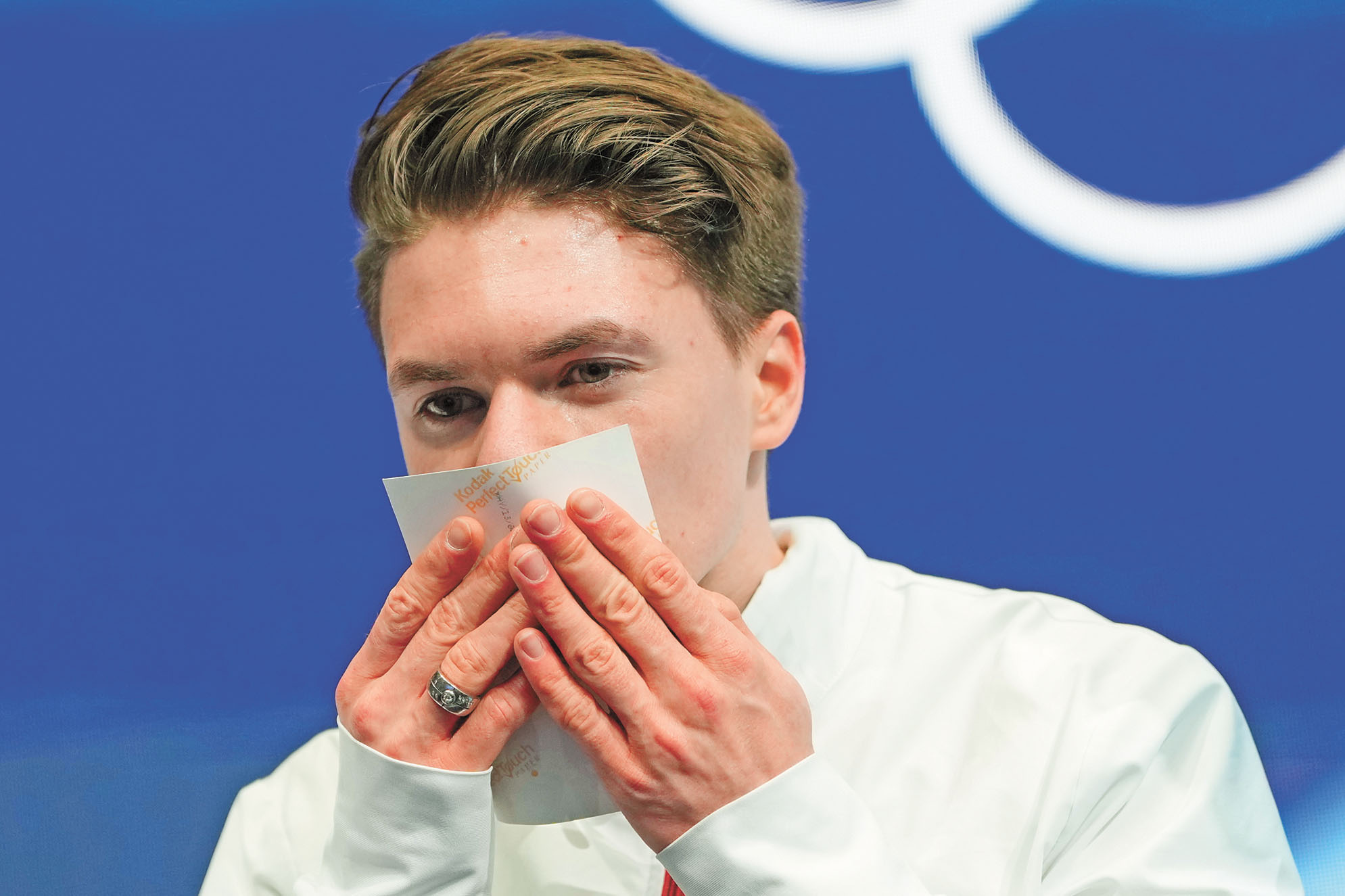 花滑等分區又稱為「親吻與眼淚區」,這裏見證過勝利的狂喜,也承載過遺憾的落寞。10日,首次亮相冬奧的馬克沁.瑙莫夫端坐這裏,親吻與眼淚落在了一張舊照片上——那是3歲時的他,被父母牽著手,初次站在冰面上。
