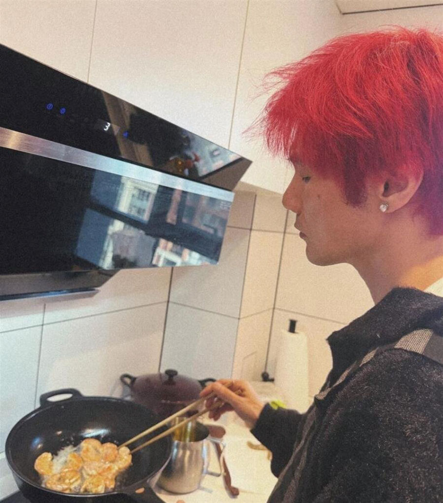 另一張照片則是兩人站在廚房裏忙進忙出的背影照,只見夫妻倆穿著圍裙並肩站在爐台前,台面上擺著滿滿食材,一人顧鍋、一人備料,分工默契十足,隔著熒幕都能感受到兩人之間甜蜜的粉紅泡泡。