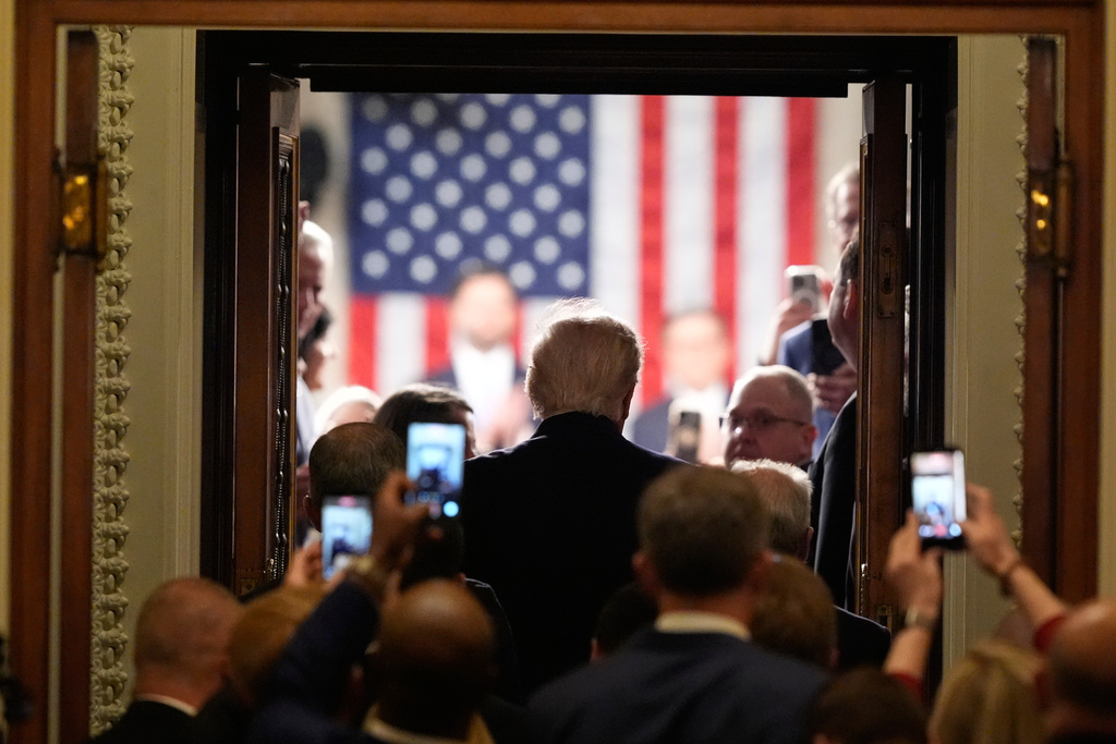 2026年2月24日,星期二,華盛頓。美國總統特朗普抵達美國國會大廈眾議院會議廳,準備在國會聯席會議上發表國情咨文演說。美聯社