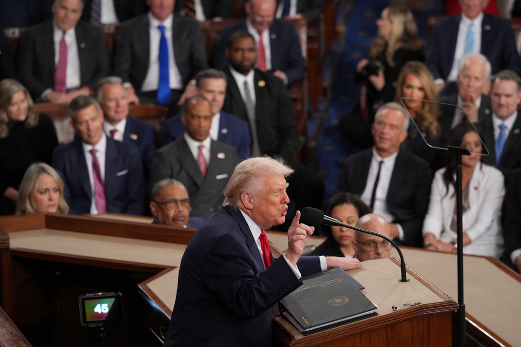 2026年2月24日,星期二,華盛頓。美國總統特朗普在國會大廈舉行的國會聯席會議上發表國情咨文演說。美聯社