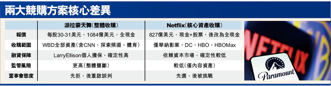 華納兄弟探索(WarnerBros.Discovery)董事會26日表示,他們認為派拉蒙天空之舞每股31美元的報價優於早前與Netflix達成的收購協議。Netflix其後宣布,將不會提高對華納兄弟探索資產的收購報價。換言之,派拉蒙大有機會完成對華納兄弟探索的收購。