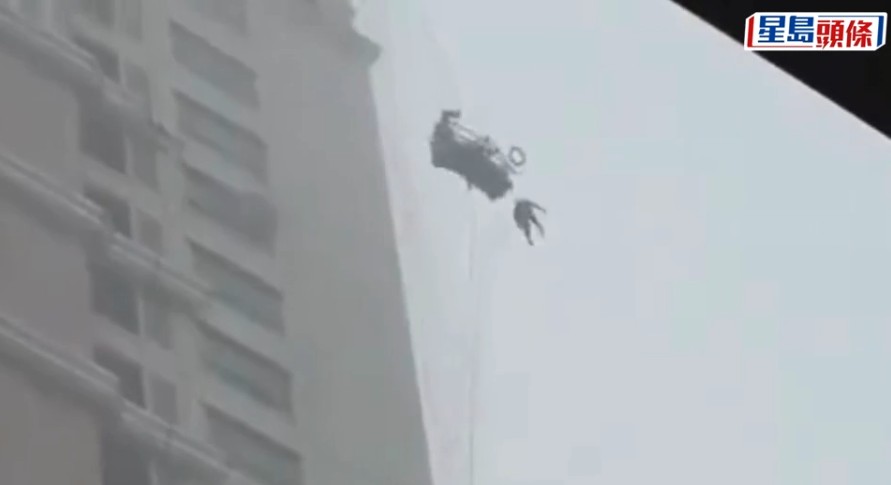 根據網上流傳的影片顯示,強風威力巨大,直接將該名工人從吊船中拋出。儘管他身上佩戴的安全帶發揮作用,使他不致直接墜落地面,但卻造成他被懸吊在半空中的危險局面。在約15分鐘的過程中,其身體如鐘擺般來回擺動,多次猛烈撞擊大廈的混凝土外牆。
