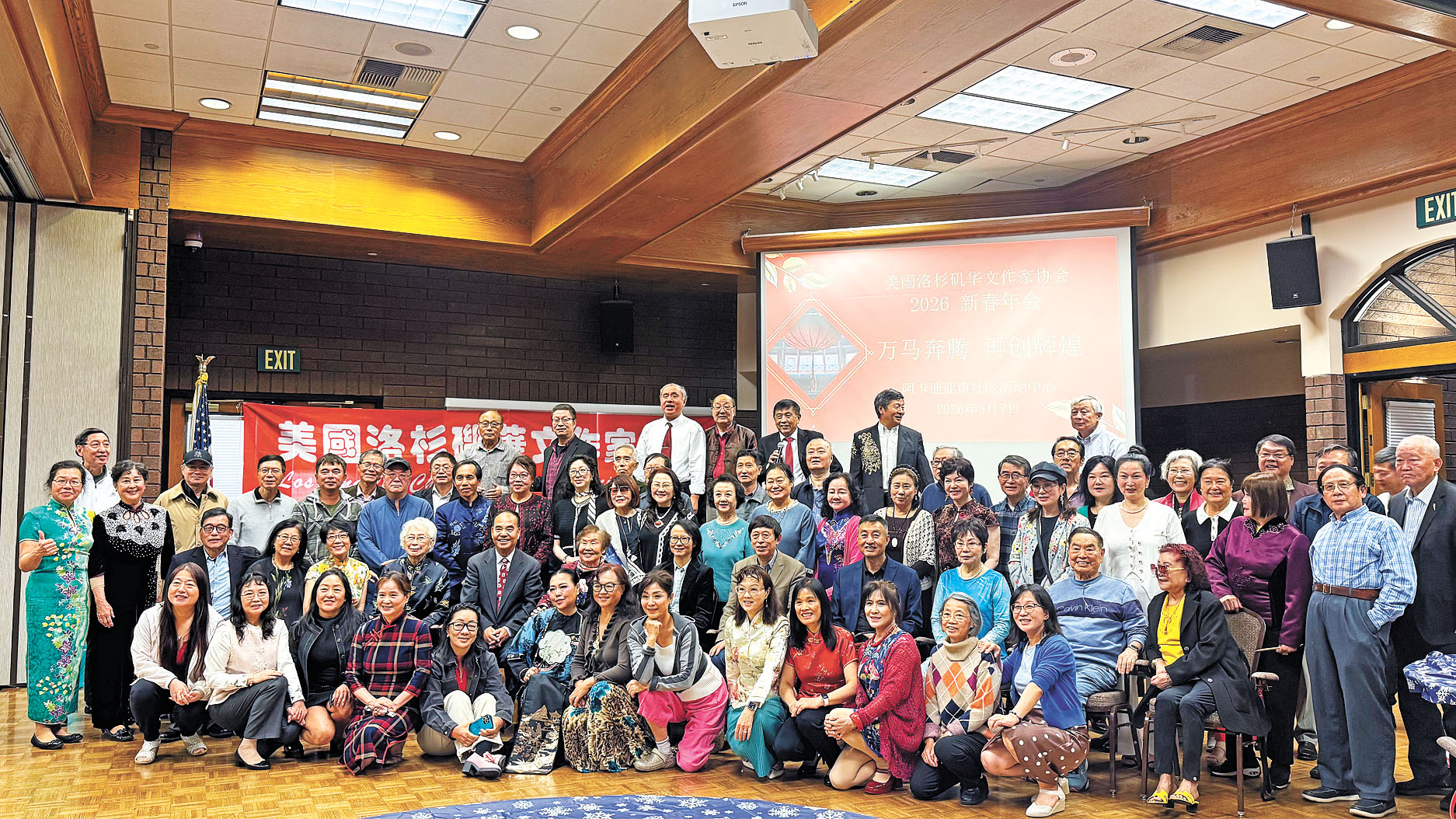 美國洛杉磯華文作家協會,7日在阿卡迪亞市社區活動中心舉辦2026年新春年會。中國駐洛杉磯總領館文化領事陳風華、協會顧問及著名作家盧新華、社區代表鹿強、林連連教授等逾百位嘉賓與會員齊聚一堂,在辭舊迎新的氛圍中回顧過去一年成果,展望華文文學發展新前景。