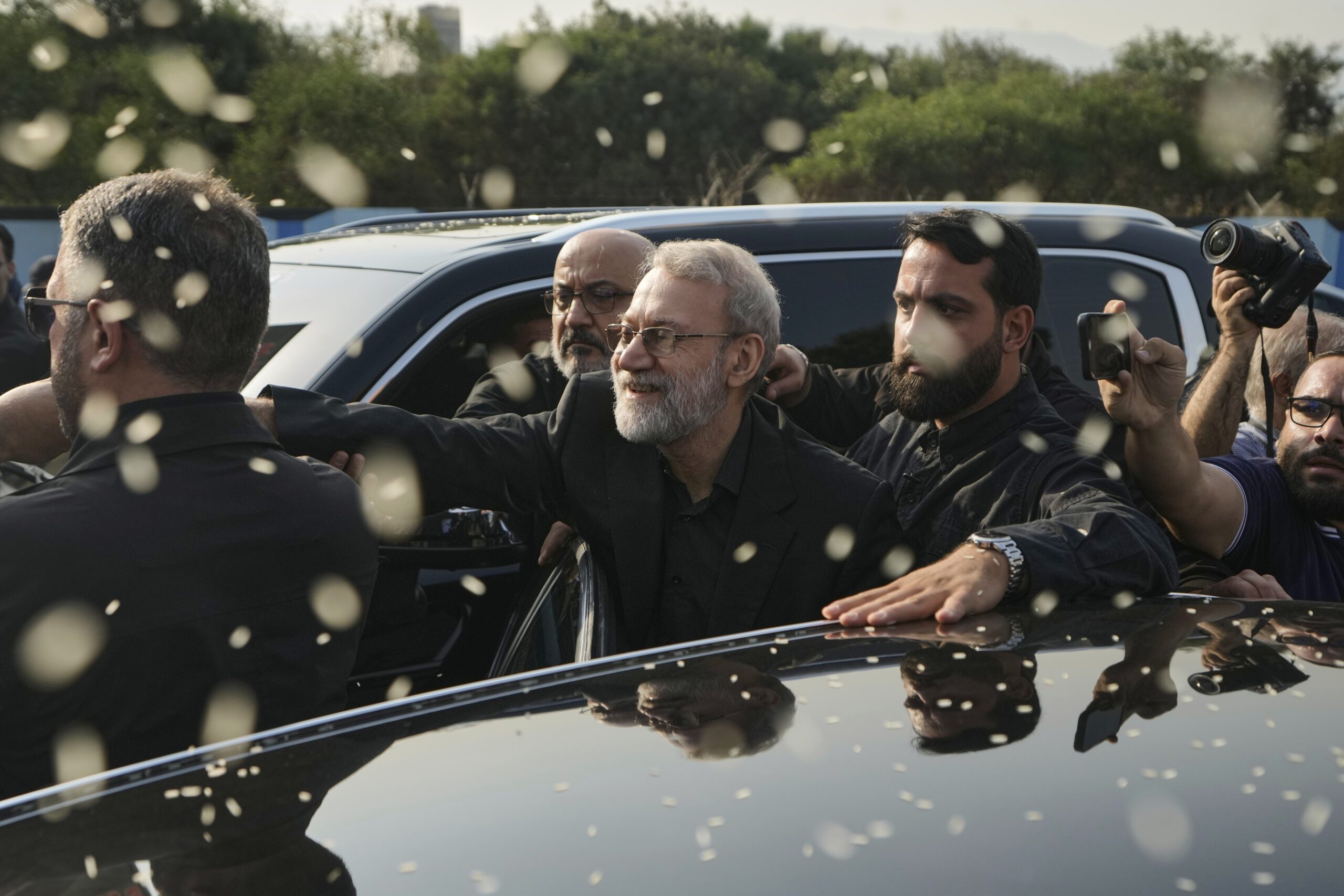 封面來源:2025年8月13日,星期三,伊朗國家安全委員會主席阿里·拉里賈尼(圖中)在黎巴嫩貝魯特拉菲克·哈里裡國際機場外,向向他拋撒大米的真主黨支持者致意。美聯社