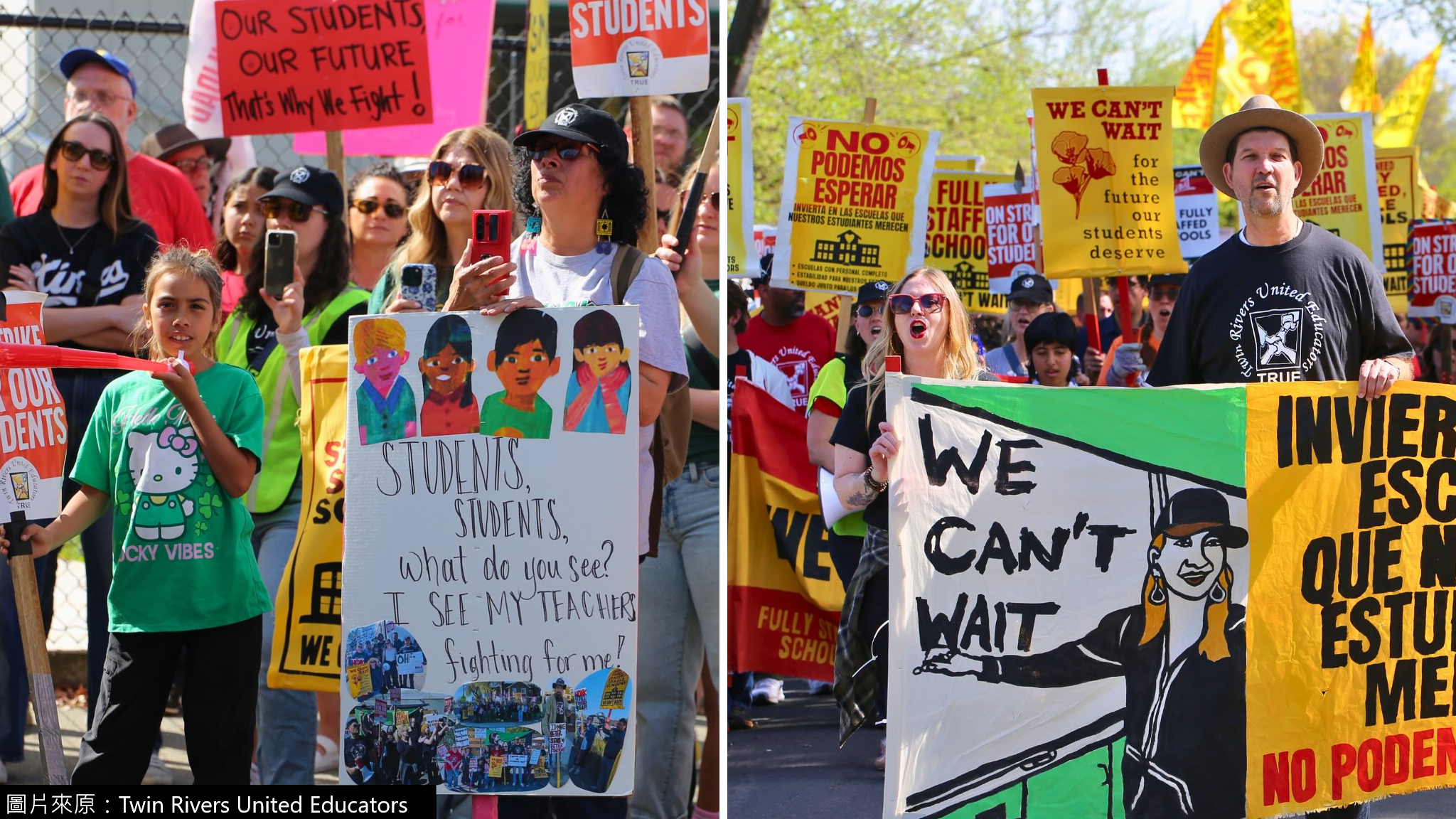 Twin Rivers 聯合校區教師在3月8日發起罷工,至3月17日下午,教師已重返談判桌。此次返談判是在民主黨籍州眾議員克雷爾(Maggy Krell)的要求下,由校區領導與教師工會代表重新協商。教師工會 Twin Rivers 聯合教育工作者會會長沃德表示,雙方在醫療保障問題上仍存在重大分歧。校區提出的醫療方案將在2027年底終止,工會認為這實際上是對教師薪酬的削減。校區向家長的最新通知指出,雙方方案仍有2200萬元的差距。