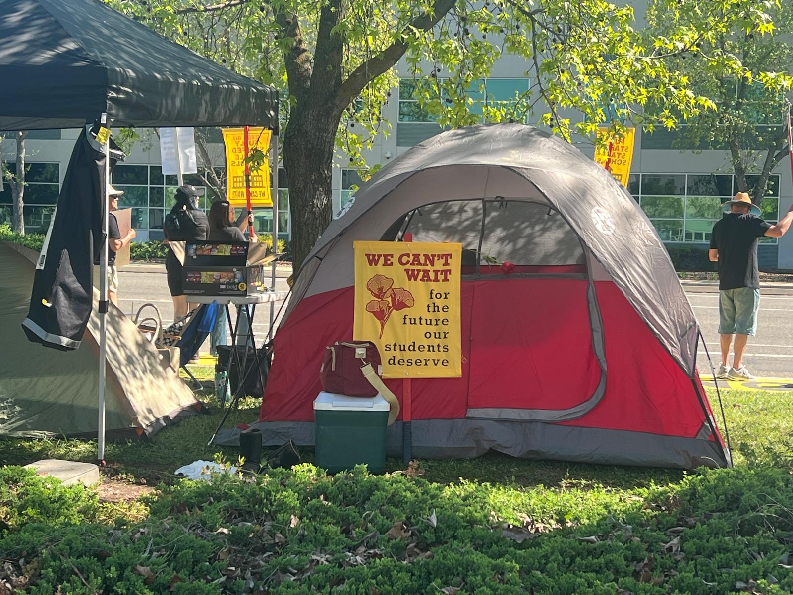晚上,記者觀察到約12名抗議者在 Natomas 校區辦公室外搭帳篷過夜,其中一名教師表示,這是首次夜宿辦公室外的抗議行動。據報導,兩個校區的此次罷工均為首次發生此類事件。