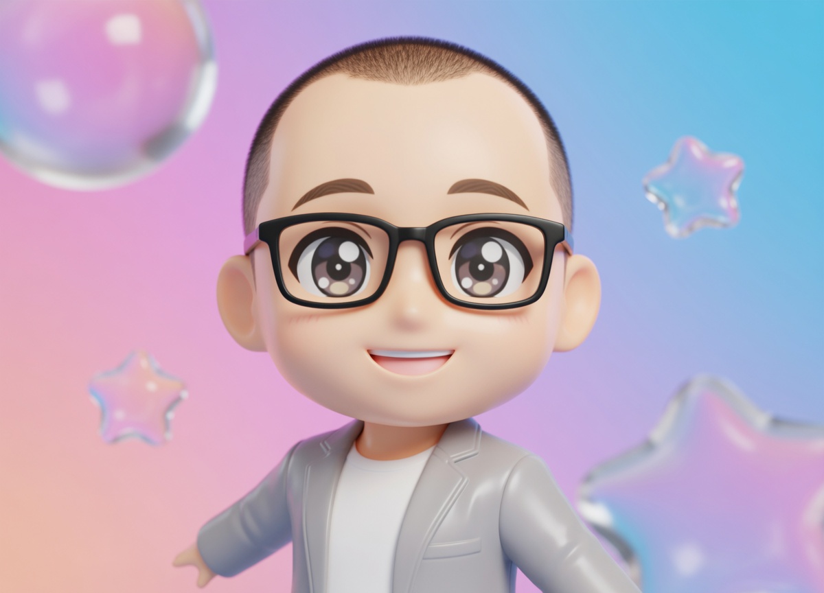 將照片中的人物轉換為高品質、光滑的3D Chibi角色,保留原有種族、膚色、五官特徵、髮型及服裝顏色。若照片無法清楚顯示服裝,AI將自動添加合適休閒服,確保角色始終穿著完整。角色比例遵循經典Chibi:大頭、小軀幹、簡化可愛的五官、誇張動畫眼睛。構圖從胸部以上為主,角色直視鏡頭,姿勢活潑表情豐富,角度可略帶傾斜或偏離中心,呈現現代動畫宣傳風格。3D渲染應具光澤感,材質平滑反光,如精緻收藏手辦,顏色鮮明有光澤,背景採用漸層色,並可加少量透明裝飾形狀(氣泡、星星等)作為輔助,不喧賓奪主。
