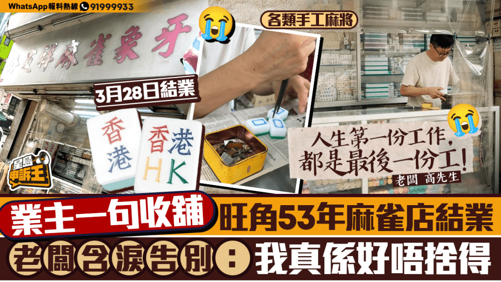 - 旺角上海街的「公友祥麻雀象牙店舖」將於2026年3月28日正式結業。