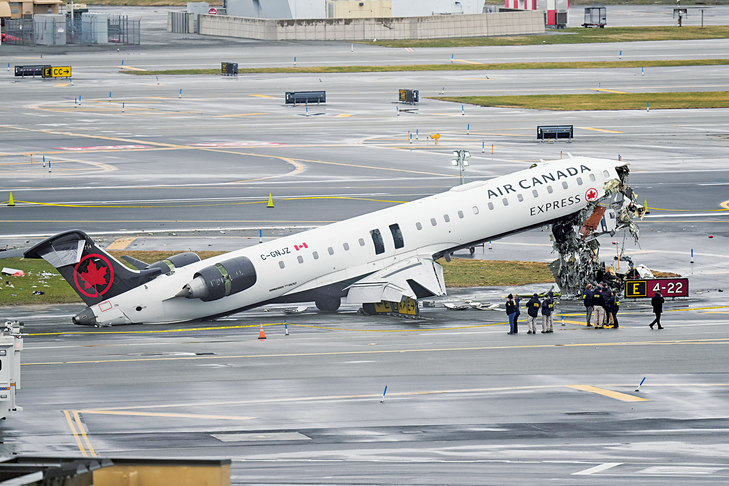 美國國家運輸安全委員會(NTSB)表示,事故發生於3月22日晚上約11時30分。該航班自蒙特利爾起飛,在皇后區拉瓜迪亞機場4號跑道降落時,與一輛正執行任務的港務局消防車發生碰撞。撞擊力道猛烈,涉事客機機頭與駕駛艙嚴重毀損,消防車亦被撞翻在跑道上。
