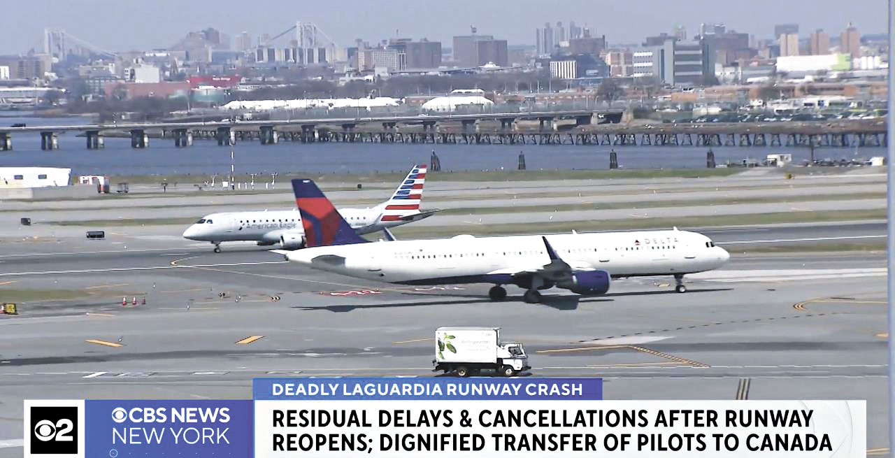 CBS紐約報道,這宗發生於22日晚間的恐怖碰撞,造成加拿大航空(Air Canada)旗下Jazz航空的兩名飛行員不幸喪生,另有數十人受傷。港務局於26日上午的聲明指出,「截至上午9時58分,4/22號跑道已重新開放。經修復與檢查,該跑道及其相關基礎設施已確認符合聯邦航空管理局(FAA)的安全營運規定。」