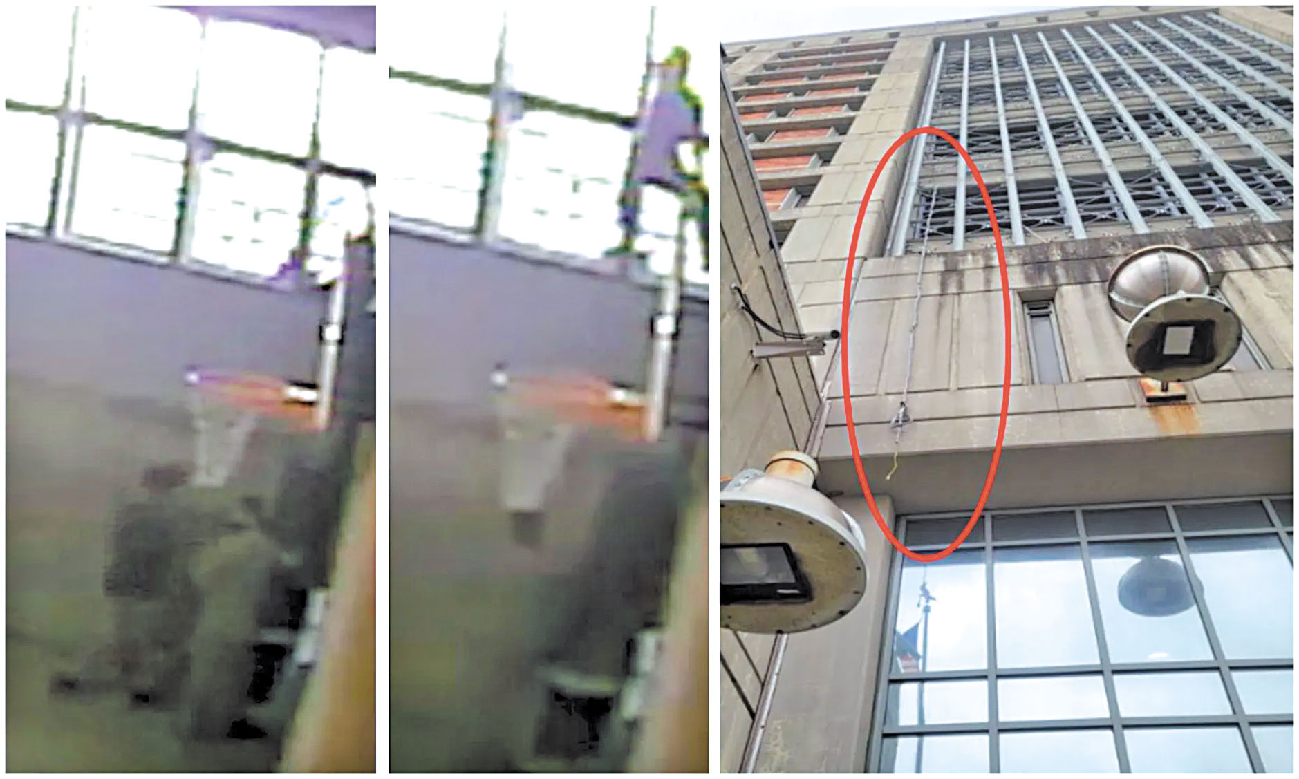 囚犯利用4樓康樂室的窗口垂下細線,鉤住由同夥從街上拋上來的50呎長繩。 法院文件