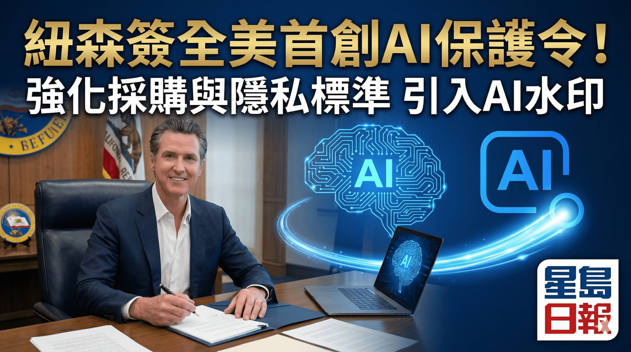 紐森簽署全美首創AI保護令 強化採購與隱私標準