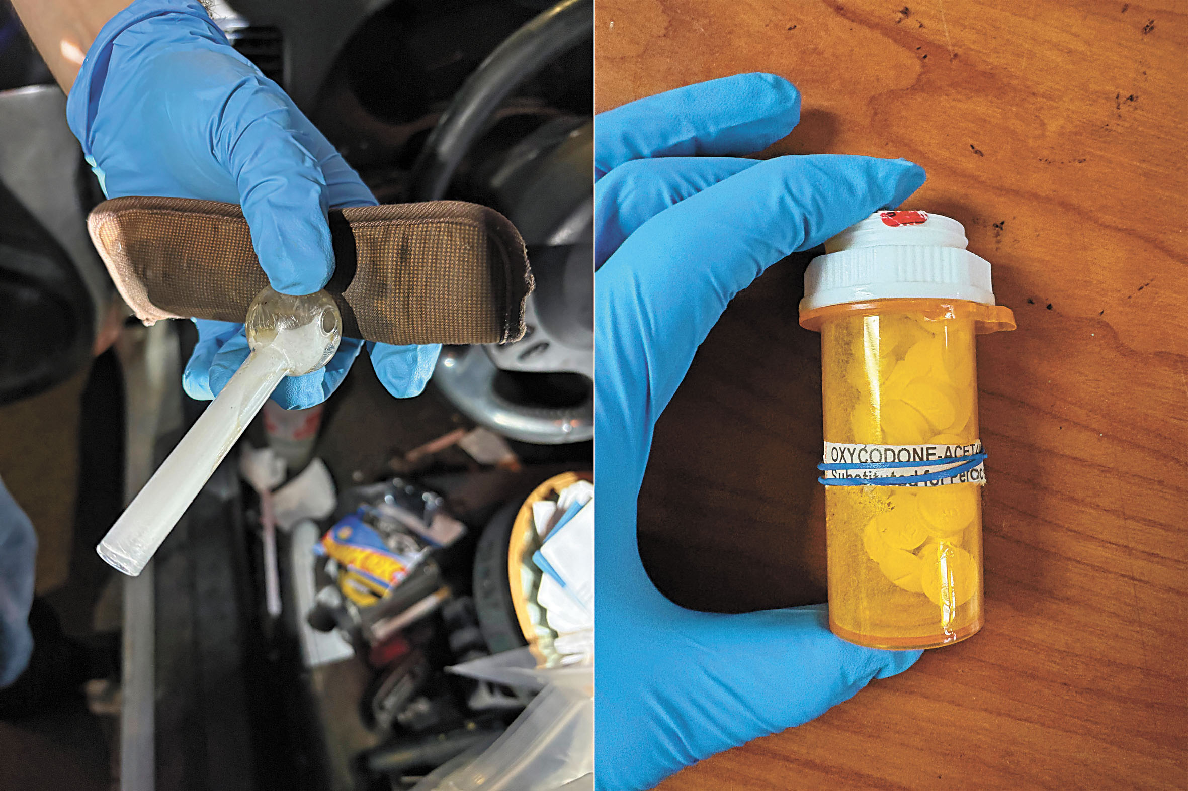 攔查期間,警員看到在車內明顯位置疑有俗稱冰毒的甲基苯丙胺,於是進行搜查。警員經查後再發現更多毒品,還有彈藥、吸毒工具和屬於另一人的駕照和信用卡,馬上將車上兩名乘客逮捕。